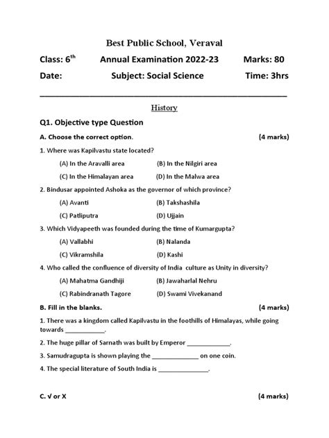 Alright, let’s peek behind the curtain and see what kind of goodies you can expect in your 6th class social sa1 question paper 2023 to 2024 pdf download . Social Studies at this level is all about building a foundational understanding of the world around us, our past, and how our society functions. For the SA1 exams, this typically covers the initial chapters of your Social Studies textbook. So, in History , you’ll likely be tested on topics like the earliest human civilizations (think Indus Valley, Mesopotamian), major ancient empires, and perhaps the very beginnings of recorded history. Questions might ask you to identify key archaeological findings, describe daily life in ancient times, or list important rulers and their contributions. It’s about understanding where we came from and how early societies developed. Then we move to Geography . This section usually focuses on Earth as our home. Expect questions about the different layers of the Earth, continents and oceans, major landforms like mountains and plateaus, and perhaps basic concepts of climate and weather patterns. Map work is often a big part of geography, so be prepared to locate countries, capitals, or geographical features on a map. Understanding directions and basic map symbols is also key. It’s your introduction to the physical world we inhabit. Finally, Civics (sometimes called Political Science or Social and Political Life) will dive into how societies are governed. For SA1, this might include topics like different forms of government (democracy, monarchy), the importance of rules and laws, fundamental rights and responsibilities of citizens, and maybe even how local governments (like municipalities or panchayats) function. Questions could ask you to explain the concept of equality, list basic rights, or describe the role of a local leader. It’s about understanding our role as citizens and how our communities are organized. The question paper will likely feature a mix of question types to assess different skills. You might see multiple-choice questions (MCQs) that test your recall of facts. Short-answer questions will require you to briefly explain concepts or provide specific information. Long-answer questions will demand more detailed explanations, requiring you to elaborate on historical events, geographical processes, or civic principles. Sometimes, there are fill-in-the-blanks or matching type questions to test your knowledge of specific terms or facts. Don’t be surprised if there are also map-based questions , especially in Geography. The key is that the 6th class social sa1 question paper 2023 to 2024 pdf download reflects this syllabus structure. By understanding these expected topics and question formats, you can focus your study efforts more effectively. It’s about preparing smart, guys, so you walk into that exam room feeling confident and ready for anything. Good luck!