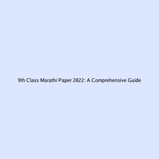 9th Class Marathi Paper 2022: A Comprehensive Guide