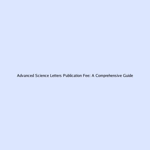 Advanced Science Letters Publication Fee: A Comprehensive Guide