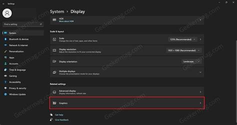 Once you’re in the System settings, look for Display on the left-hand menu and click it. Then, scroll down (you might need to scroll quite a bit) until you find the Graphics settings option. Click on that.