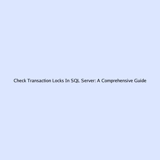 Check Transaction Locks in SQL Server: A Comprehensive Guide
