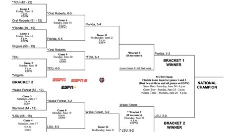 Let’s break down how the College World Series 2025 journey actually works, because understanding the structure is key to filling out that printable bracket like a pro. It all starts with the Selection Show, where 64 teams are chosen for the NCAA Division I Baseball Championship. These teams are divided into 16 regionals, each with a four-team, double-elimination format. The winners of each regional then advance to the Super Regionals. This is where things get really intense. The 16 regional champions are paired up to play in eight best-of-three Super Regional series. It’s a home-and-away setup, meaning the higher-seeded team hosts the series. This stage is crucial because it narrows the field down to the elite eight – the teams that will actually make it to Omaha for the College World Series finals. Once those eight Super Regional winners are decided, they head to TD Ameritrade Park in Omaha, Nebraska. Here, the eight teams are split into two double-elimination brackets (usually bracket 1 and bracket 2). The winners of these two brackets then face off in a best-of-three championship series to determine the ultimate NCAA Division I Baseball National Champion. So, when you’re filling out your College World Series 2025 printable bracket pdf , remember that you’re tracking progress through these distinct phases: Regionals -> Super Regionals -> CWS Bracket Play -> CWS Championship Series. Each step is a major hurdle, and upsets are common, especially in the early rounds. That’s the beauty of it, right? Predicting the path requires a keen eye for talent, momentum, and maybe a little bit of luck. Keep in mind that seeding plays a massive role, with top seeds generally hosting their regionals and having an easier path. However, history is littered with Cinderella stories from lower seeds making deep runs. So, while you can use seeding as a guide, don’t discount the underdogs when filling out your printable college world series bracket ! It’s a marathon, not a sprint, and the teams that consistently perform under pressure are the ones that emerge victorious.
