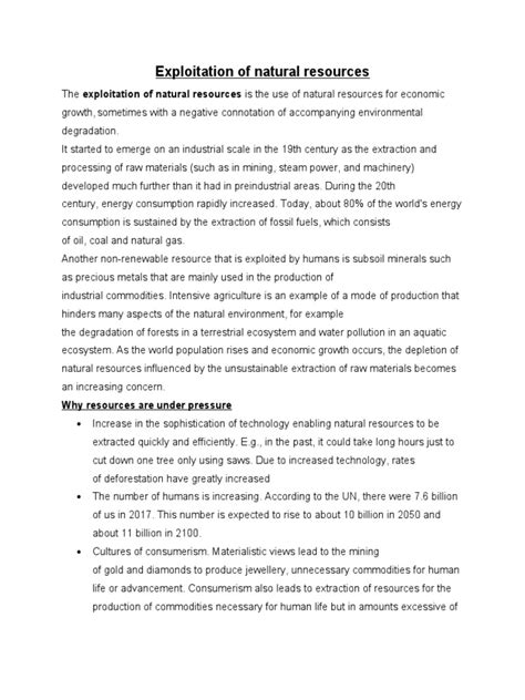 Consequences Of Continuous Natural Resource Exploitation