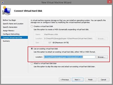 10. Create Virtual Machine in Hyper-V: Open Hyper-V Manager and create a new virtual machine. Use the converted VHD file as the virtual hard disk for the new VM.