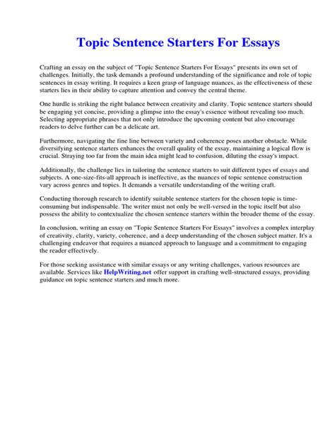 Crafting Killer Topic Sentences For Essays
