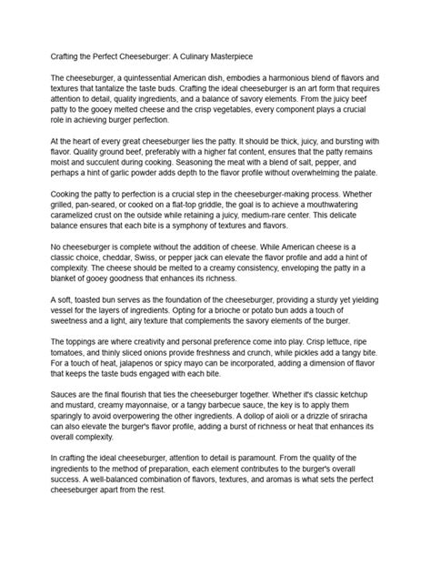 There you have it, folks! A comprehensive guide to crafting the ultimate cheeseburger experience . From understanding the cheeseburger ingredients to mastering the perfect cooking techniques, you are now equipped with the knowledge to make a cheeseburger that will impress even the most discerning burger aficionado. Remember, the one-man cheeseburger is a journey, not just a destination. It’s about experimenting, having fun, and creating something delicious that you can be proud of. Get creative, try new things, and don’t be afraid to make mistakes. Now go forth, conquer those grills, and create some cheeseburger magic! Happy cooking, and enjoy every delicious bite!