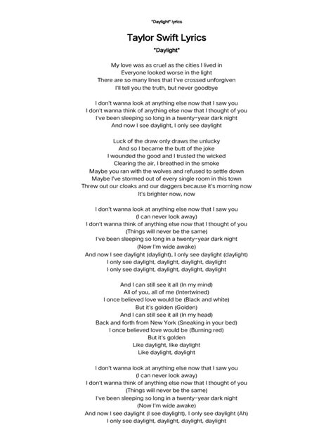 Hey guys! Ever stumbled upon a song with lyrics that just hit different, you know? Today, we’re diving deep into the lyrics of ‘Daylight’. This track has been making waves, and for good reason. It’s got that blend of vulnerability and raw emotion that really resonates with people. We’ll break down what these lyrics might mean, explore the themes, and see why this song has captured so many hearts. So, grab your headphones, settle in, and let’s get into the nitty-gritty of ‘Daylight’!