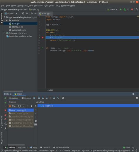 For example, let’s set a breakpoint in the read_item function in main.py :