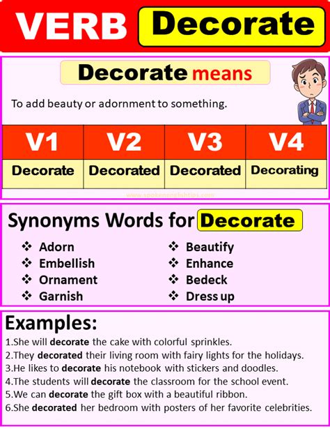 Another way to think about decorated verb 2 is to consider it as a verb phrase in the past tense that includes modifiers. These modifiers help to paint a more complete picture of the action, providing details that a simple past tense verb alone cannot convey. By understanding how these decorations work, you can significantly improve your writing and make your sentences more impactful. So, next time you’re writing, think about how you can decorate your verbs to add depth and richness to your prose.