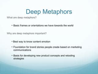 - Persuasion: Deep metaphors can be incredibly persuasive, shaping our perceptions and influencing our beliefs.