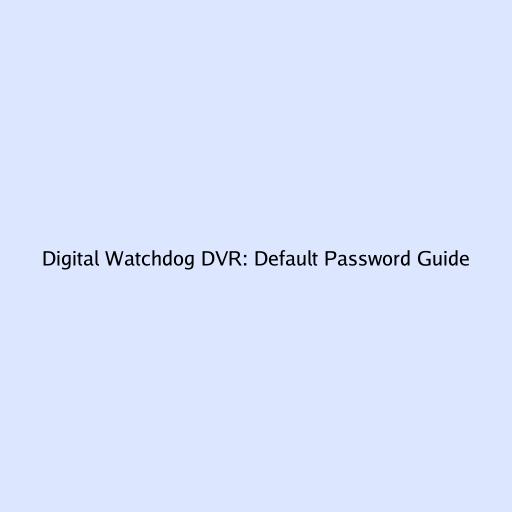 Digital Watchdog DVR: Default Password Guide