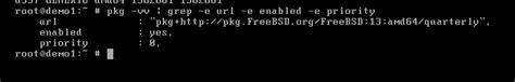 These lines tell the pkg utility where to find the FreeBSD package repository and enable it. Make sure the enabled line is set to yes . Save the file and exit the text editor. In nano , you can do this by pressing Ctrl+X , then Y to confirm the changes, and then Enter to save the file.