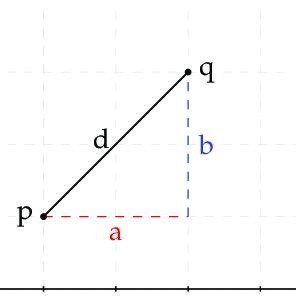 d = sqrt((x2 - x1)² + (y2 - y1)²)