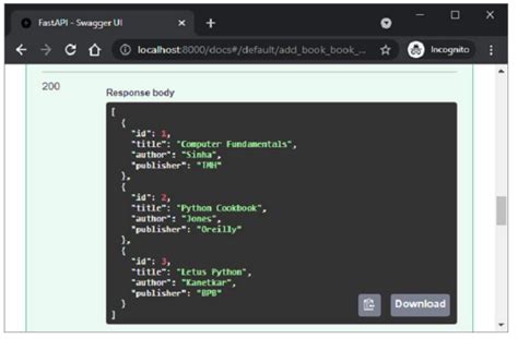 Now that we can create items, let’s figure out how to ‘Read’ data in Python FastAPI ! This means fetching items from our items_db . There are generally two ways we might want to read data: getting a single item (usually by its ID) or getting a list of all items. Let’s tackle both.