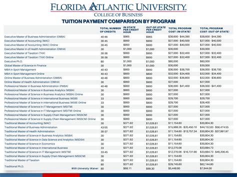When considering Florida Atlantic University tuition fees on a per-credit basis, remember that these rates can also differ between undergraduate and graduate programs. Graduate students often pay a different per-credit rate, and this can vary even more depending on the specific master’s or doctoral program. Some highly specialized or in-demand graduate programs might have higher per-credit costs due to the specialized faculty, resources, and smaller class sizes involved. It’s not uncommon for graduate tuition to be higher than undergraduate tuition, even on a per-credit basis. Always refer to the official FAU tuition and fees schedule for the most accurate and up-to-date information, as these figures are subject to change each academic year. Don’t forget to factor in the total number of credits required for your degree program – this will give you a good estimate of your total tuition cost over your entire degree.