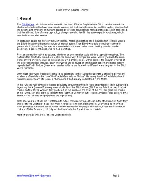 Before we delve into where to find free courses, let’s quickly recap what the Elliott Wave Principle is all about. Developed by Ralph Nelson Elliott in the 1930s, this principle suggests that market prices move in specific patterns called waves. These patterns are fractal, meaning they appear on both small and large time scales. The basic pattern consists of five waves moving in the direction of the main trend, followed by three corrective waves. Identifying these patterns can help traders predict future price movements and make informed trading decisions.