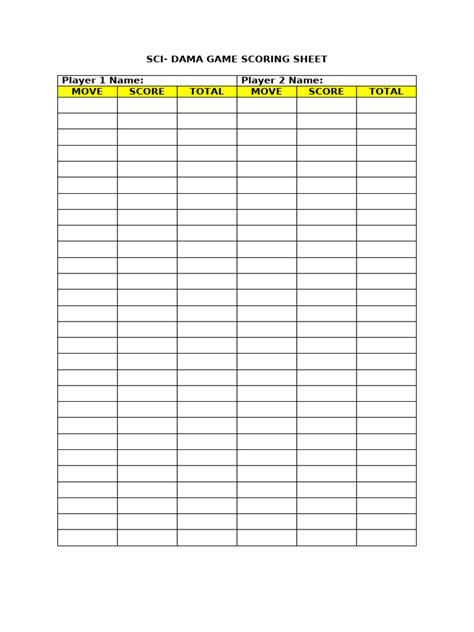 Free SCI DAMA Score Sheet Templates