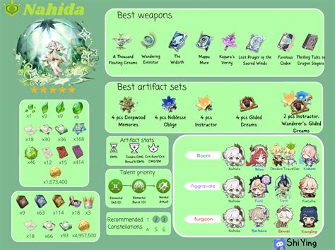 When it comes to artifacts for Nahida’s support build , the goal is simple: stack as much Elemental Mastery (EM) as humanly possible. Why EM, you ask? Because Nahida’s damage, especially her Tri-Karma Purification from her Elemental Skill, scales directly with her EM. The higher her EM, the more damage she deals, and since her skill is constantly applying Dendro and triggering reactions, this indirectly buffs your on-field DPS significantly. Plus, her Elemental Burst buffs are also tied to her EM, providing more EM and Crit Rate to your active character. So, yes, EM is king here, guys. The ideal artifact set for Nahida is the 4-piece Deepwood Memories . This set is practically made for her support role. The 2-piece bonus grants a 15% Dendro DMG Bonus, which is nice, but the real prize is the 4-piece bonus: after hitting an opponent with an Elemental Skill or Burst, the opponent’s Dendro RES is decreased by 30% for 8 seconds. This debuff applies even if Nahida isn’t on the field , making it incredibly potent for her off-field support capabilities. This means your main DPS will be hitting enemies that take significantly more Dendro damage. If another character on your team is already running a 4-piece Deepwood Memories set (which is highly recommended for most Dendro teams), you can opt for a 2-piece EM set (like Gilded Dreams or Wanderer’s Troupe) combined with a 2-piece Deepwood Memories, or even two 2-piece EM sets to reach that juicy 300+ EM sweet spot. However, for pure support, the 4-piece Deepwood Memories is generally the best choice as it provides consistent Dendro RES shred for the entire team. Now, let’s talk main stats. For the Sands, you absolutely want Elemental Mastery . For the Goblet, Elemental Mastery is also the preferred choice, as it further boosts her reaction damage and buffs. If you’re struggling to reach the EM cap for her buffs or need more damage, a Dendro DMG Bonus goblet can be considered, but EM is usually the priority for support. For the Circlet, again, Elemental Mastery is the go-to. Aim to get Nahida to at least 800 EM. Once you hit that cap, any further EM you gain from substats or set bonuses is effectively wasted for her personal damage and buffs, so you can then start focusing on CRIT Rate, CRIT DMG, or even Energy Recharge if you find yourself lacking Burst uptime. Substats are crucial here: prioritize Elemental Mastery , then Energy Recharge (to ensure her Burst is always up), followed by CRIT Rate and CRIT DMG . Don’t neglect ER; a missing Burst means a missing team buff and less Dendro application. Remember, the goal is to make her a buffing machine and enable your other characters to shine through strong Dendro reactions.