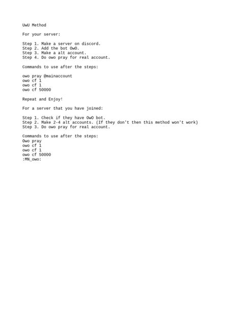 Hey guys, ever stumbled upon the OwO Bot in your Discord server and wondered about that mysterious owo claim command? You’re not alone! This little command is your key to unlocking some seriously cool rewards and engaging with the bot in a fun, interactive way. Basically, it’s all about claiming things that the OwO bot has, well, claimed for you or that you’ve earned through various activities. Think of it like a digital treasure chest that you need a specific key – the owo claim command – to open. It’s super straightforward once you get the hang of it, and it adds a whole new layer of excitement to your Discord experience. We’re going to dive deep into what this command does, how to use it effectively, and why you should totally be using it. So, buckle up, grab your favorite beverage, and let’s get this party started! Understanding the core functionality of the owo claim command is essential for any active user of the OwO Bot. It’s not just about typing a few letters; it’s about interacting with a system designed to reward your engagement. When you use owo claim , you’re essentially telling the bot, “Hey, I’m here, and I’m ready to collect what’s mine!” This could be anything from daily login bonuses, rewards from special events, or even items you’ve acquired through other commands within the bot. The beauty of it lies in its simplicity and its direct impact on your in-game or bot-specific inventory. It streamlines the process of receiving your goodies, ensuring you don’t miss out on any valuable items or currency. Many users overlook the power of consistent use, but regular owo claim commands can significantly boost your progress within the OwO Bot’s ecosystem. So, what exactly are you claiming? It varies! You might be claiming Hims (the bot’s primary currency), Gems (a rarer currency often used for special purchases), or even unique items that have various uses within the bot, like pets, weapons, or decorative items. The owo claim command acts as the universal gateway to all these rewards. It’s the final step in a process that might have involved battling monsters, completing quests, or simply being active in the server. The bot tracks your progress and achievements, and when it’s time to cash in, owo claim is your go-to. Without it, those earned rewards would just sit there, unclaimed and inaccessible. So, next time you see a notification about an available reward or you know you’ve completed an action that merits a claim, don’t hesitate to type it out. It’s a simple action with potentially significant rewards, and it’s designed to be as user-friendly as possible. Let’s break down the syntax and common scenarios where this command shines.