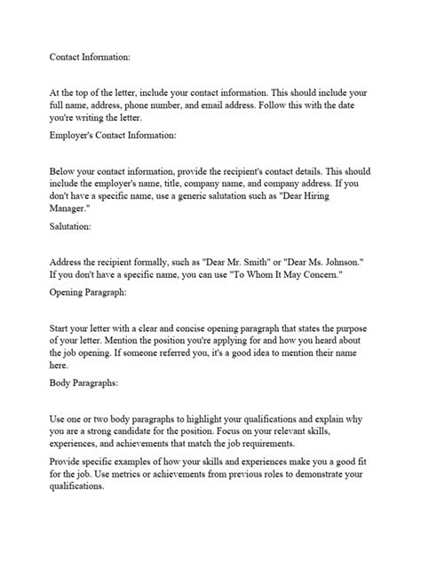 Alright, let’s break down what needs to go into a killer online job application letter . You can’t just wing this, guys. There are a few crucial elements that make it effective. First off, you’ve got your contact information . This sounds basic, but make sure it’s accurate! Include your name, phone number, email address, and LinkedIn profile URL. Then comes the date and the hiring manager’s contact information . Try your absolute best to find the hiring manager’s name and title. Addressing it to a specific person makes a huge difference compared to a generic “To Whom It May Concern.” If you can’t find it, a polite title like “Hiring Manager” or “Hiring Team” is better than nothing. Next, the salutation . Keep it professional but warm. “Dear [Mr./Ms./Mx. Last Name],” is standard. The introduction is your hook. State the position you’re applying for and where you saw the advertisement. Immediately grab their attention by mentioning a key skill or achievement that aligns perfectly with the job description. This is where you show you’re not just sending a generic application. Then, the body paragraphs . This is where you expand on your qualifications. Don’t just repeat your resume! Instead, pick 2-3 key requirements from the job posting and provide specific examples of how you’ve met or exceeded them in past roles. Use the STAR method (Situation, Task, Action, Result) to illustrate your accomplishments. Connect your skills and experiences directly to the needs of the company and the role. Show them you understand their challenges and how you can be the solution. Finally, the closing paragraph . Reiterate your enthusiasm for the role and the company. Briefly summarize why you’re a strong candidate and include a clear call to action, such as expressing your eagerness for an interview. And don’t forget a professional closing like “Sincerely,” or “Best regards,” followed by your typed name. Each part plays a vital role in presenting a polished and persuasive application.