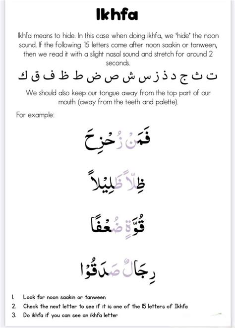 To solidify your understanding and application of Ikhfa, engaging in regular practice is essential. Here are some exercises you can incorporate into your study routine to sharpen your skills: