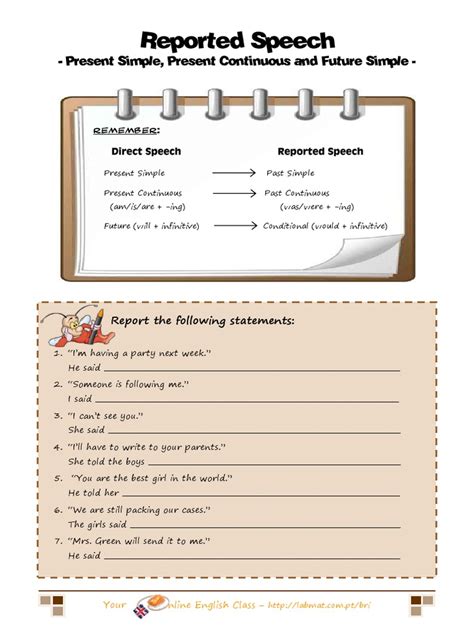 These examples illustrate how verb tenses, pronouns, and time expressions change when converting direct speech into reported speech. Pay close attention to the subtle adjustments, and you’ll soon become proficient in using reported speech accurately. Practice with these examples and try creating your own sentences to reinforce your understanding. Remember, the key is to focus on the changes in tense, pronouns, and time references. The more you work with these transformations, the more natural they will become.