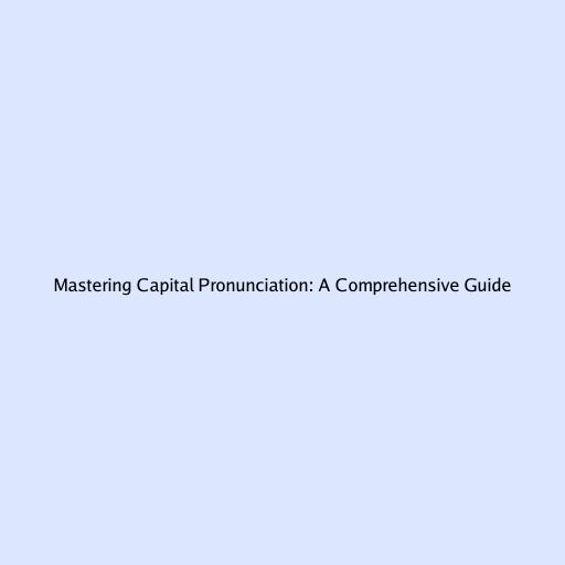 Mastering Capital Pronunciation: A Comprehensive Guide