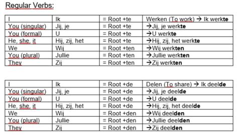 Don’t get too hung up on memorizing every single vowel shift right away. The more you read and listen to Dutch, the more these patterns will start to sound natural. For now, focus on identifying the stem and applying the ‘-de’ or ‘-te’ rule. Remember, -de for voiced endings and -te for voiceless endings. A handy mnemonic is the ’t kofschip rule, which lists the voiceless consonants: t, k, f, s, ch, p . If the stem ends in any of these, you use -te . If it ends in any other consonant (d, b, g, v, z, m, n, l, r), you use -de . Let’s recap with a few more examples: