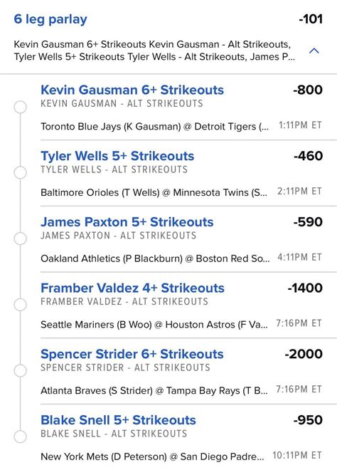 2. Add Other Legs Carefully: Don’t just focus on the pitchers. Consider other legs for your parlay, such as the moneyline (who will win the game), the over/under on the game’s total runs, or prop bets. Be sure to consider their opponents, the recent performance of the teams, and any other relevant factors.