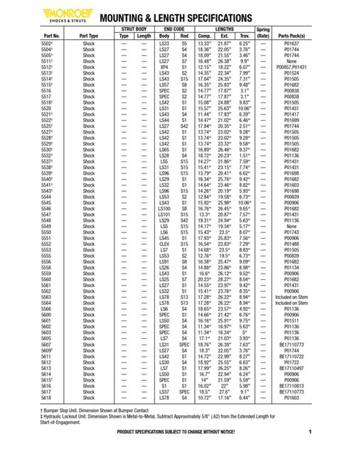 • Interpreting Product Specifications: Each Monroe shock model will have a detailed product specification section. Pay attention to key specifications such as the shock’s length, mounting type, and damping characteristics. These specifications will help you compare different models and choose the one that best meets your needs.