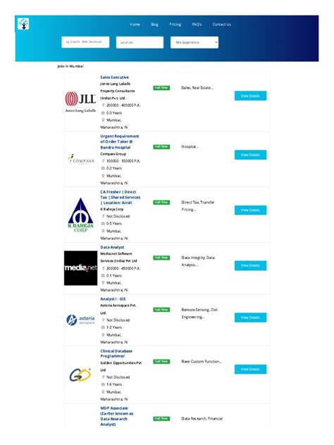 Mumbai Job Newspaper Listings