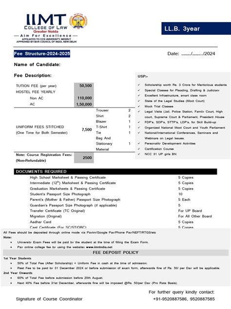 Let’s zoom in on the tuition fees, which is probably the biggest chunk of the NMIMS Indore BA LLB fees . These fees cover the cost of your academic courses and help with the facilities and resources provided by the university. While I don’t have the exact current tuition fee figures, you can usually find the most up-to-date information on the NMIMS Indore official website. They usually have a dedicated section for fees, with a detailed breakdown of all the charges. It’s essential to visit the website to get the precise figures for the academic year you’re interested in. Also, be aware that tuition fees may be subject to annual revisions, so always confirm the latest amounts. The tuition fees often cover access to classrooms, libraries, computer labs, and other academic resources. It supports the infrastructure of the institution, ensuring that you have a conducive learning environment. Keep in mind that the fees will vary depending on the year of your study, so make sure you check for the most accurate and up-to-date information. In addition to the official website, you can contact the admissions office directly. They can provide clarification and give you the most current information on the fee structure. Be sure to budget and also consider what is covered in the tuition fees. Understanding what your tuition covers helps in planning for other personal expenses, such as books and other supplies. So, always check the official website for the most recent numbers! It’s super important to stay updated. This will help you plan your finances effectively and ensure you’re aware of any changes.