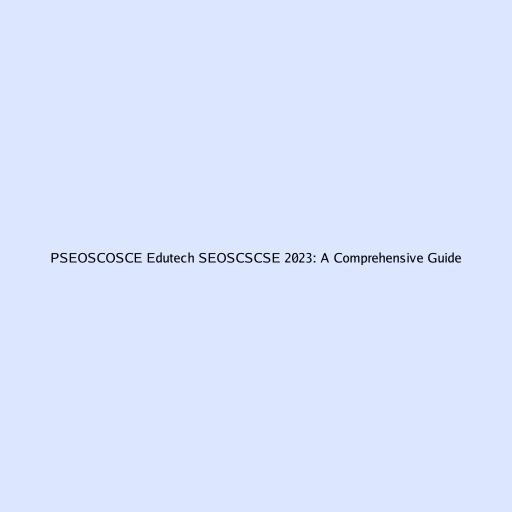 PSEOSCOSCE Edutech SEOSCSCSE 2023: A Comprehensive Guide