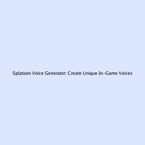 Splatoon Voice Generator: Create Unique In-Game Voices