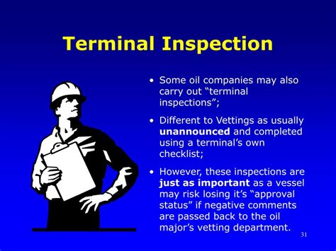So, who are these dedicated individuals performing the crucial terminal inspection service , and what makes them qualified? Great question, guys! Typically, these inspections are carried out by specialized third-party inspection companies or by dedicated departments within larger port authorities or shipping lines. These aren’t just random folks off the street; they are professionals with specific expertise. The qualifications required are pretty rigorous because the stakes are so high. Firstly, they need a strong understanding of maritime operations and logistics . This means knowing the ins and outs of how ships operate, how cargo is handled, and the general flow of goods through a terminal. Many inspectors come from backgrounds in maritime studies, engineering, or have extensive experience working in the shipping industry. Technical knowledge is also paramount. They need to understand the mechanics of cranes, forklifts, and other heavy equipment, as well as the structural integrity of vessels and cargo handling gear. This often involves formal training and certifications related to equipment inspection and safety. Knowledge of international and local regulations is non-negotiable. This includes safety standards (like those set by the IMO - International Maritime Organization), environmental regulations, and specific port authority rules. They need to be up-to-date on all the legal requirements to ensure compliance. Attention to detail is perhaps the most critical personal attribute. A missed bolt, a slight crack, an incorrect document – any small detail can have significant consequences. Inspectors must have a keen eye and a methodical approach to their work. Communication skills are also vital. They need to be able to clearly document their findings, write detailed reports, and communicate any issues or recommendations effectively to terminal operators, ship captains, and other stakeholders. Finally, many inspectors hold certifications from recognized industry bodies. These certifications demonstrate their competence and adherence to professional standards. Examples might include certifications in cargo surveying, marine surveying, or safety inspections. These professionals are essentially the guardians of safety, efficiency, and compliance within the demanding environment of a shipping terminal, ensuring that operations meet the highest standards.