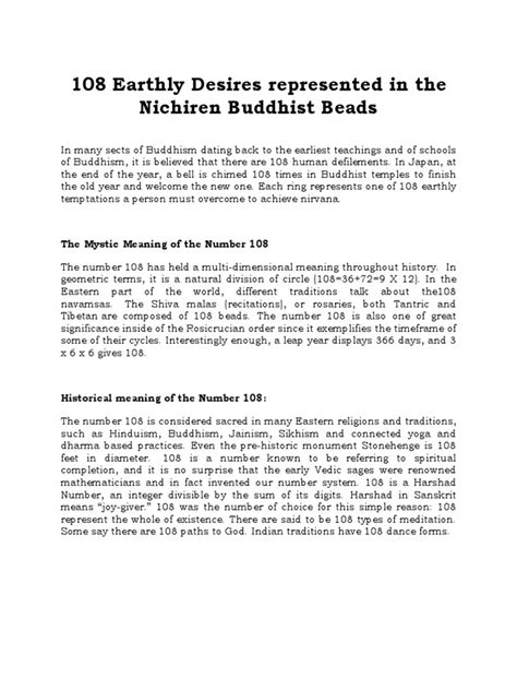 The number 108 pops up a lot in Buddhism, and in Hinduism too. It’s considered a sacred number, and its significance is multifaceted. For starters, in Buddhism, it’s often said that humans are plagued by 108 worldly desires or afflictions that cause suffering. These aren’t just your everyday wants like a new phone or a fancy car; these are deeper, more fundamental cravings that stem from our ego and our misunderstanding of reality. Think of them as the roots of dissatisfaction that keep us trapped in the cycle of rebirth, also known as samsara . The tradition suggests that by understanding and ultimately transcending these 108 desires, one can achieve enlightenment, or nirvana . It’s believed that by reciting mantras 108 times, or by having 108 beads on a mala (prayer beads), we are engaging in practices that help us focus our minds and work towards overcoming these inner obstacles. The number itself is thought to be derived from astronomical observations, mathematical principles, and even the properties of the human body. For instance, the distance between the Earth and the Sun is approximately 108 times the diameter of the Sun, and the distance between the Earth and the Moon is also roughly 108 times the Moon’s diameter. In yoga, there are 108 energy lines, or nadis , converging to form the heart chakra. So, this number isn’t arbitrary; it’s woven into the fabric of the universe and our own existence, making it a powerful symbol in spiritual practices aimed at purification and liberation. Understanding the significance of 108 is key to appreciating the depth of the Buddhist teachings on desire. It’s a number that encourages contemplation and reminds us of the vastness of the spiritual path ahead. It’s not about reaching a destination overnight, but about the consistent, dedicated effort to purify our minds and hearts. The practices associated with 108 are designed to be a constant reminder of our spiritual goals, helping us to stay grounded and focused amidst the distractions of daily life. It’s a beautiful interplay between the macrocosm and the microcosm, reflecting the interconnectedness of all things.