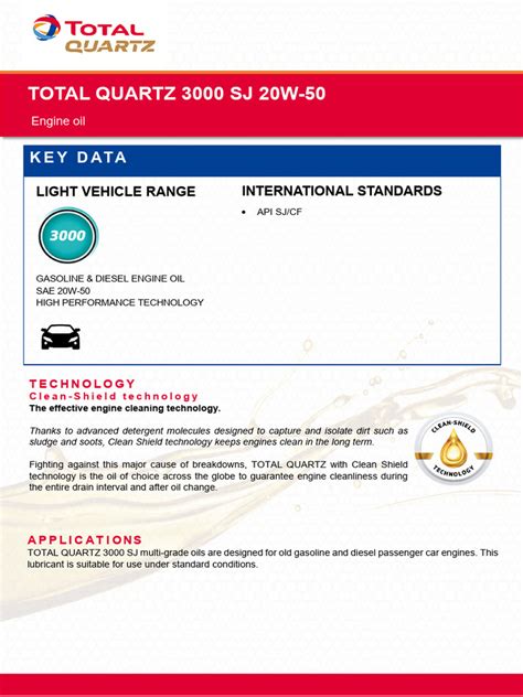 • Viscosity Stability: One of the most significant advantages of Total Quartz 20W-50 is its ability to maintain its viscosity across a wide range of temperatures. This is crucial because your engine experiences extreme temperature variations, from cold starts to scorching hot operation. The oil ensures consistent lubrication, preventing wear and tear on critical engine components.