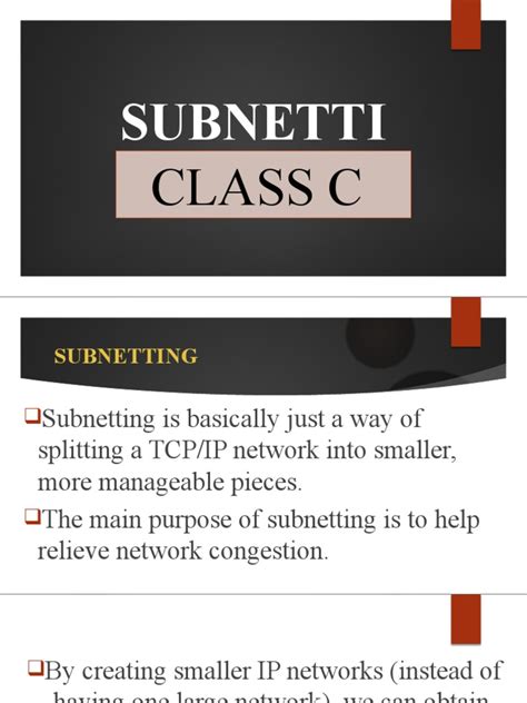 Now, while Class C IP addresses were great, that limit of 254 devices per network could sometimes be a bottleneck, even for smaller organizations. This is where a really clever technique called subnetting came into play. Think of subnetting as taking a large piece of land (your Class C network) and dividing it into smaller, more manageable plots (subnets). In the context of Class C, subnetting allows you to break down that single Class C network into multiple smaller logical networks. How does this work? It involves borrowing bits from the host portion of the IP address and using them to create subnet IDs. This means that instead of just having a network ID and a host ID, you now have a network ID, a subnet ID, and a host ID. The magic of subnetting is that it doesn’t change the fact that you’re using a Class C address range; it just makes the network more organized and efficient. For example, you could take a Class C network and subnet it into, say, 4 smaller networks. Each of these subnets would have fewer devices, making network management easier, improving security by isolating traffic, and enhancing performance by reducing broadcast domain sizes. It was an essential tool that extended the utility of Class C addresses significantly, allowing organizations to scale their network operations without needing to acquire entirely new, larger IP address blocks. It’s a fundamental concept that remains vital in network administration even with the advent of CIDR.