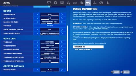 First, you’ll want to make sure voice chat is enabled. There’s usually a simple toggle or a checkbox to turn it on or off. Make sure it’s turned on! Next, pay attention to the voice chat mode. This setting determines how you communicate with other players. There are usually a couple of options: Team Chat and All Chat. Team Chat limits voice communication to your teammates, which is usually the best option for strategic coordination. All Chat allows you to talk to everyone in the game, including your opponents. While this can be fun for some trash-talking, it can also be distracting and make it harder to communicate effectively with your squad. So, use this with caution. If your voice chat isn’t working, double-check your input and output devices. Make sure your headset is selected as both the input (microphone) and output (speakers) device. You might also want to adjust the microphone and speaker volumes. If your mic is too quiet, your teammates won’t be able to hear you. If the speakers are too loud, you might miss important audio cues from the game. These settings will help you fine-tune your voice chat experience, guys! Another thing to note is the use of push-to-talk. Some games have it, and some don’t. Push-to-talk requires you to press a button to activate your microphone. This is great for keeping background noise to a minimum, but it can also be a hassle. If Fortnite has push-to-talk, make sure you know which button activates it.